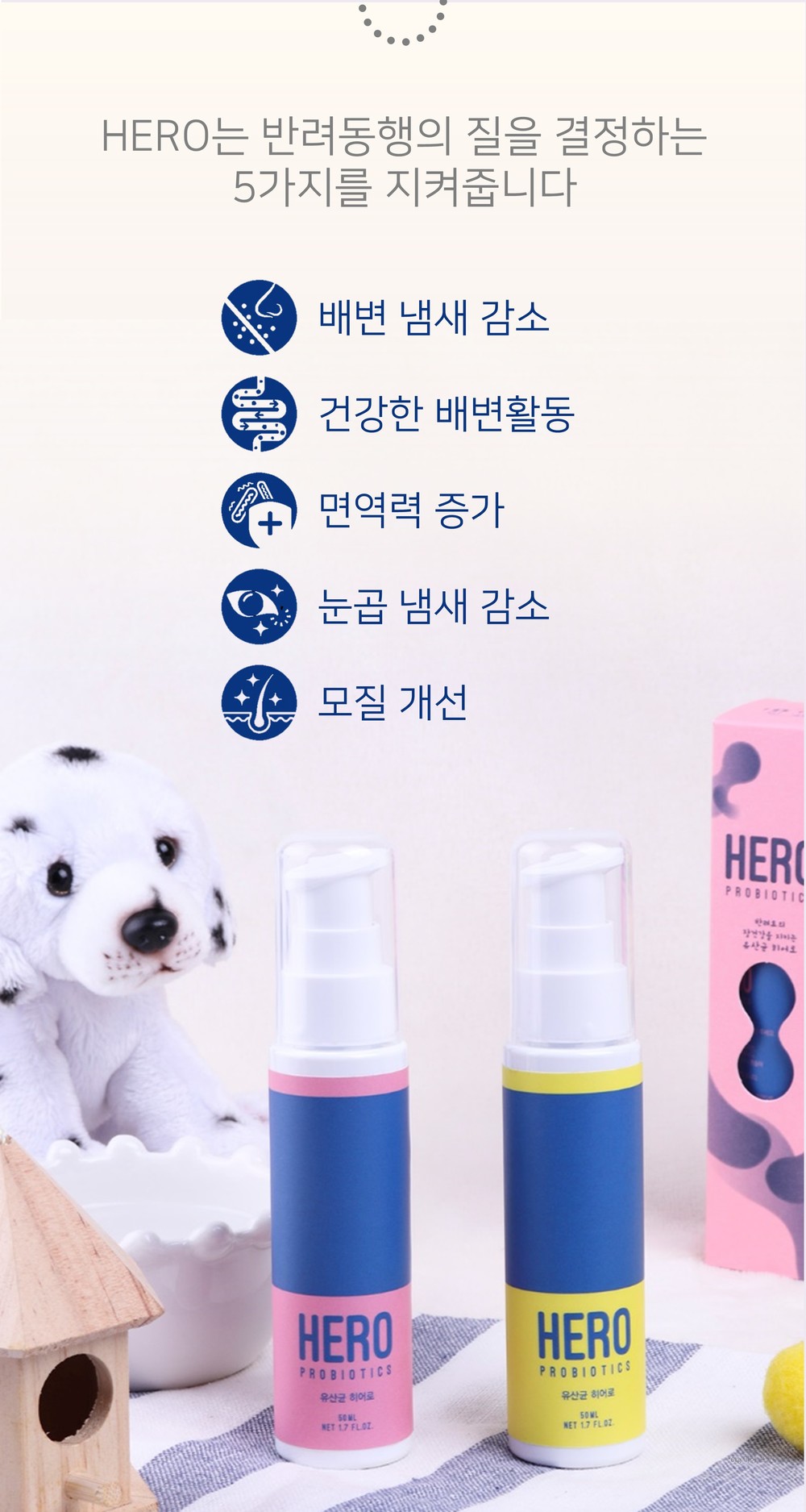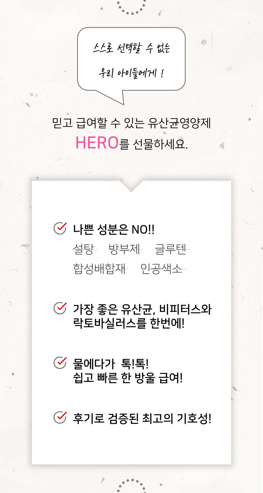A.히어로는 철저한 검증과 내 아이(반려동물)에게 먹일 마음으로 만든 디톡스 유산균 입니다.